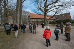 Die Voraussetzung für unsere Waldwanderung konnte nicht besser sein: pünktlich zu unserem Treffen auf dem Hof Kröger am 27. März kam die Sonne zum Vorschein und hat uns drei Stunden begleitet. In dieser Zeit erfuhren die ca. 30 Teilnehmer/innen durch Klaus Detlef Kröger (Vorsitzender der Forstbetriebsgemeinschaft Forstverband Jesteburg) ausführliche Erklärungen über die Entwicklung der Waldwirtschaft in der Heide, den Wandel von Mono- zu Mischkultur und die Notwendigkeit, den Wald zu retten, um das Klima zu retten.
