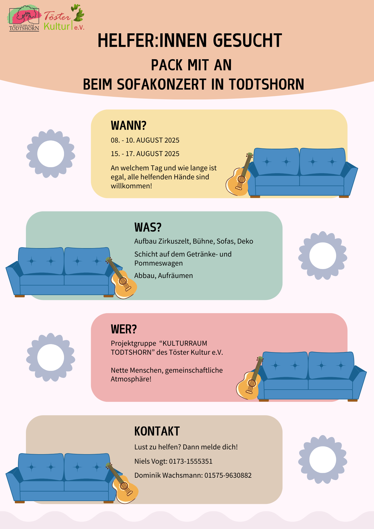 SOFAKONZERT 2025 HELFER GESUCHT 2025-05-24T13:09:14+02:00Von Harry Kalinowsky|Allgemein, Kulturraum Todtshorn| Ähnliche Beiträge