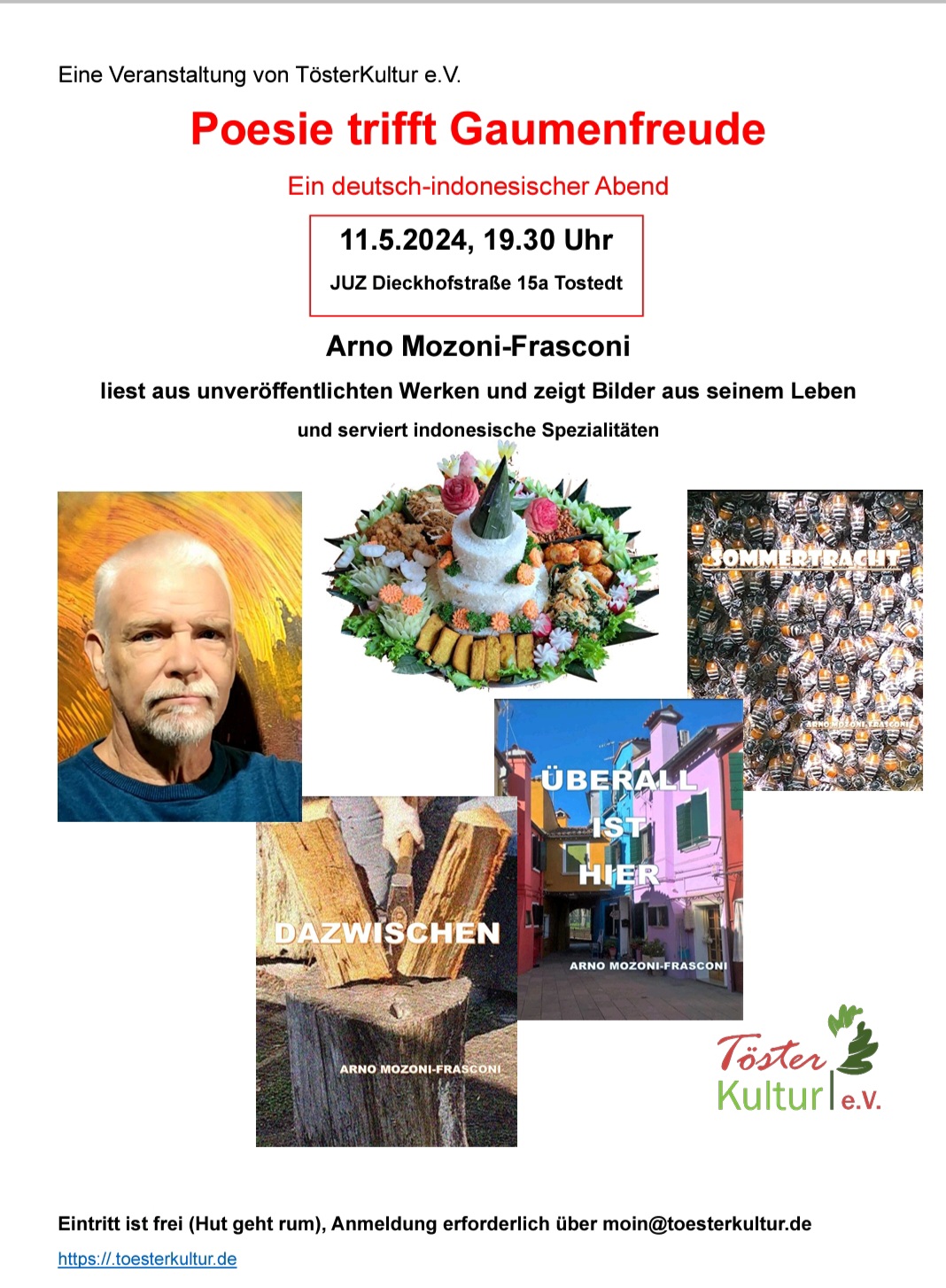 Zweiter Anlauf für Poesie trifft Gaumenfreude! Arno ist wieder in Tostedt und vollauf damit beschäftigt für seine im letzten Herbst ausgefallene Veranstaltung zu werben. Bei dem Titel der Veranstaltung könnte man ins Grübeln kommen. Das ist auch beabsichtigt. Der Untertitel [...]